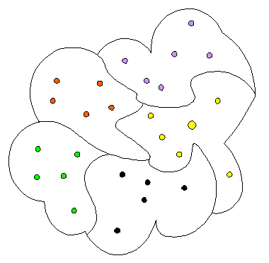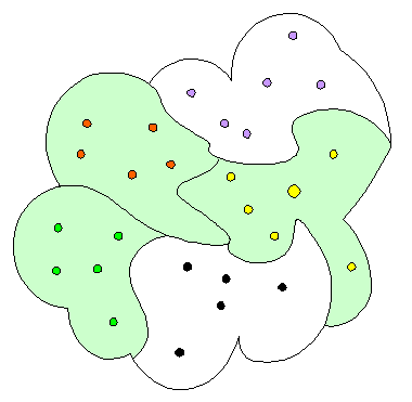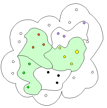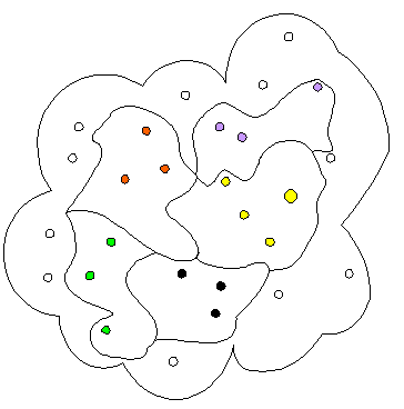 Im Bild stellt die Gesamtwolke die Menge aller Datensätze dar. Jeder Punkt symbolisiert einen Datensatz.
