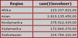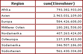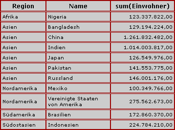 Man kann zwar für jede Gruppe die Region und die Summe der Einwohner angeben, aber nicht den Namen, denn